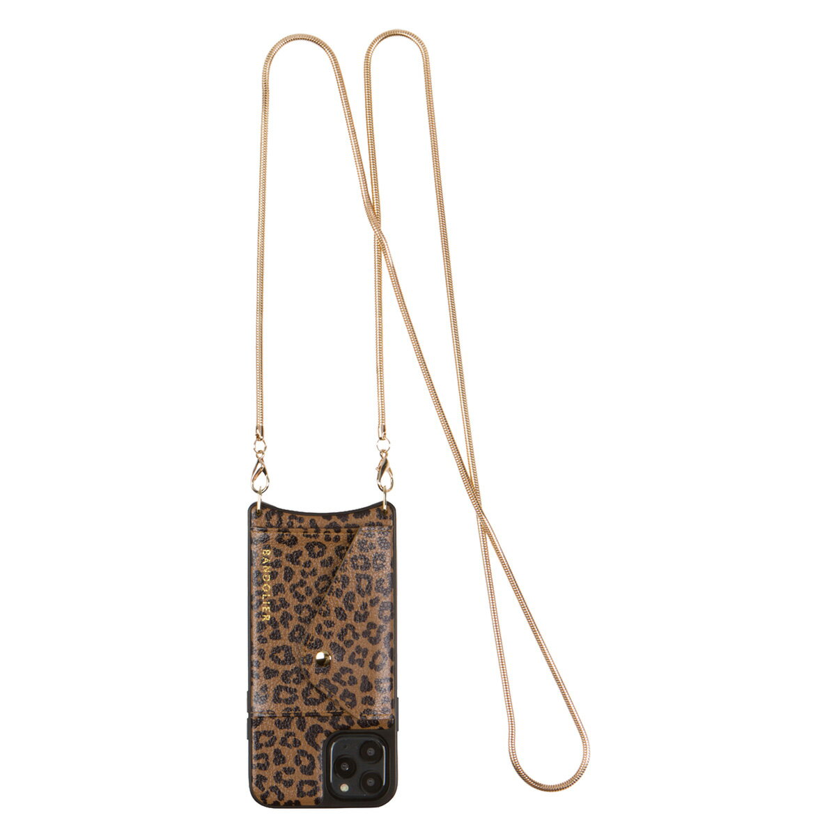 上質なレオパードレザーケース×ゴールドスネークチェーンストラップ×ゴールドの金具を合わせたデザイン。