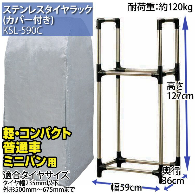 [10%OFFクーポン発行中]普通車用ステンレスタイヤラック カバー付 KSL-590C ネジ止め不要で組立ラクラク【アイリスオーヤマ】 iriscoupon