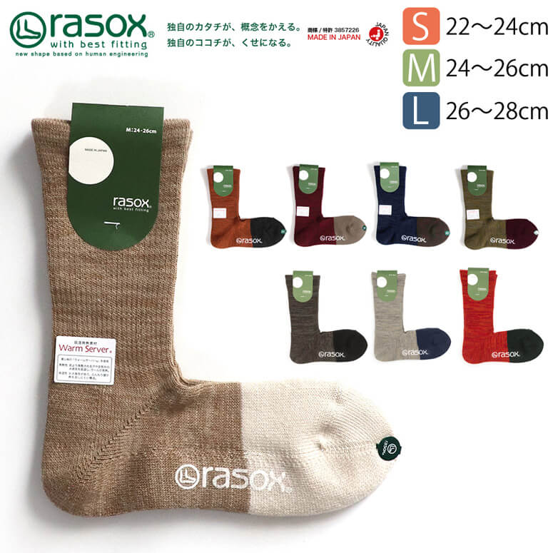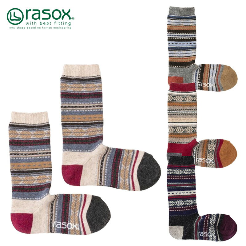 ★期間限定!最大15%OFFクーポン対象★rasox(ラソックス) 靴下 ソックス マルチボーダー ウール クルー 冷え取りソックス 冷え取り靴下 メンズ レディース 男性用 女性用 日本製 (ca152cr03)