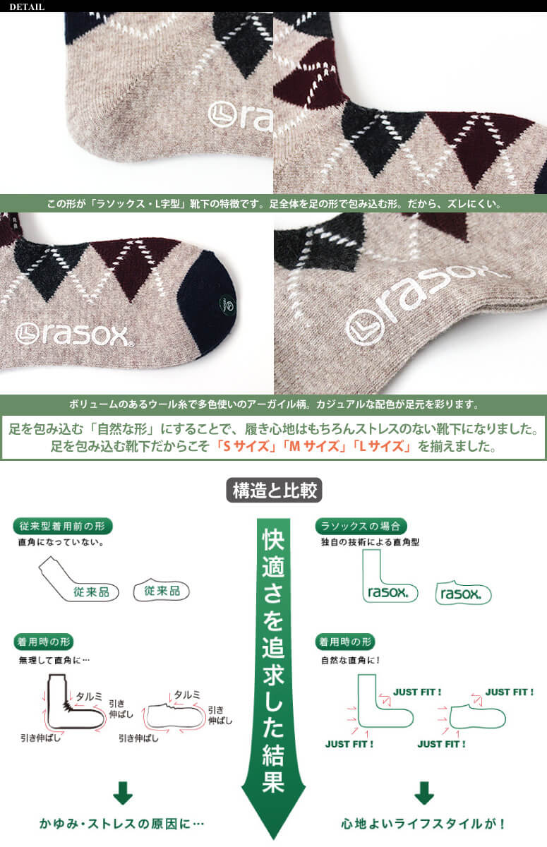 L型ソックスは、ラソックスだけです。